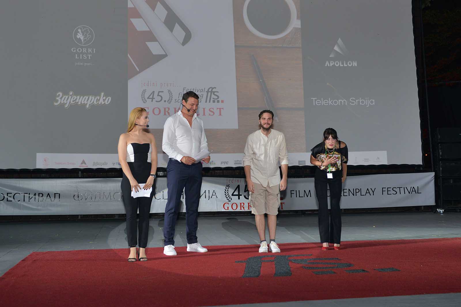 Prateći program Festivala filmskog scenarija nastavljen je kabareom „Cimet i vanila“ na Trgu kulture, a zvanični, takmičarski, od 20:30 u amfiteatru „Danilo Bata Stojković“ projekcijom filmova, „Oaza“,po scenariju i u režiji Ivana Mikića i filma „Živ čovek“ po scenarijuMilene Marković, u režiji Olega Novkovića.
